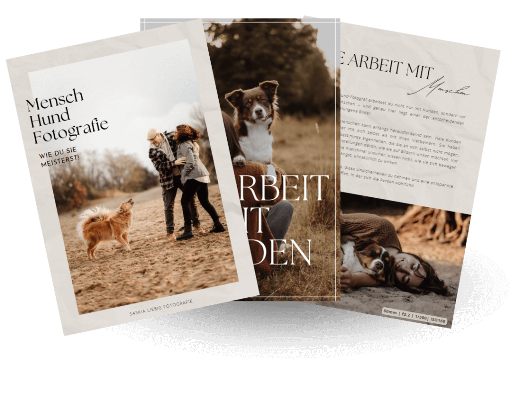 Auf 40 Seiten teile ich mein gesamtes Wissen über dieses besondere Genre der Hundefotografie mit dir.
